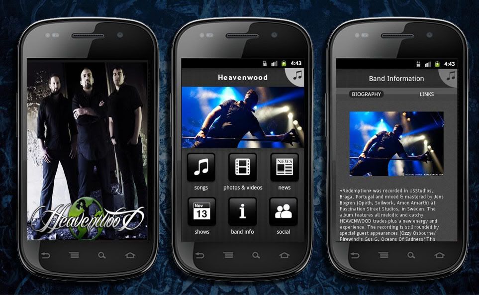 With this app, HEAVENWOOD fans will have the chance to listen to the band’s music, see exclusive pictures and other goodies, check out their bio and latest news updates, and share it all with their friends everywhere on their ANDROID mobile device with this free Wood Mobile App which is available for download at: